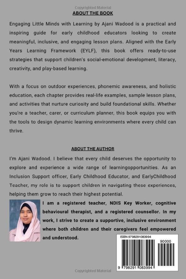 Whether you’re just starting your teaching journey or seeking to enrich your current practice, this book is a vital companion in crafting meaningful, child-centred learning experiences that engage, inspire, and prepare little minds for a lifetime of learning.